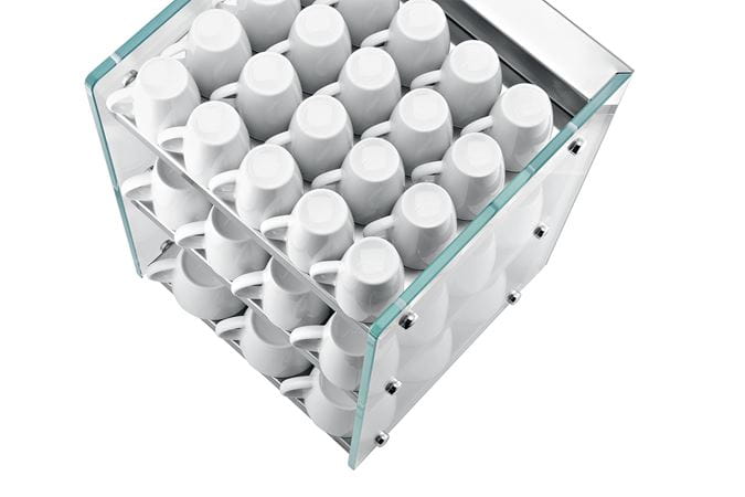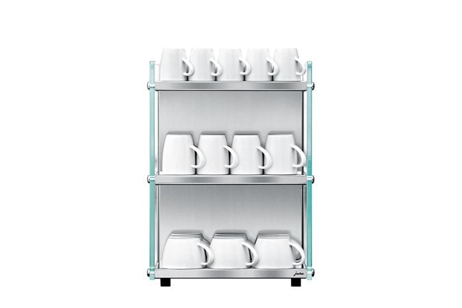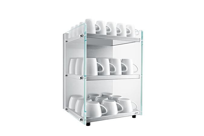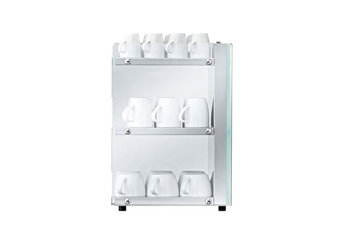 Üç saklama yüzeyi sayesinde, toplam 100 espresso bardağı (çap. 60 mm) veya 60 kahve bardağı (çap. 80 mm) için bol miktarda alan sağlar. Üç modern ısıtma paneli enerji tasarrufludur ve sessiz çalışır, bu da ürünü ofislerde kullanım için ideal kılar.